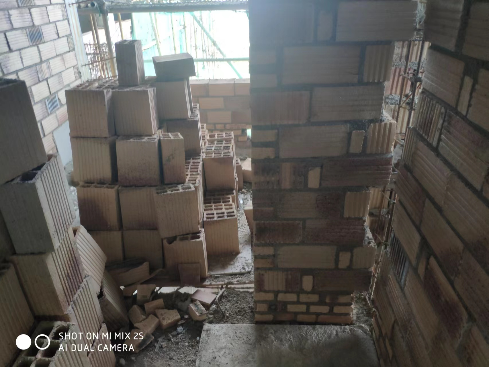 3、22#樓電梯井堆放磚塊,存在安全隱患。