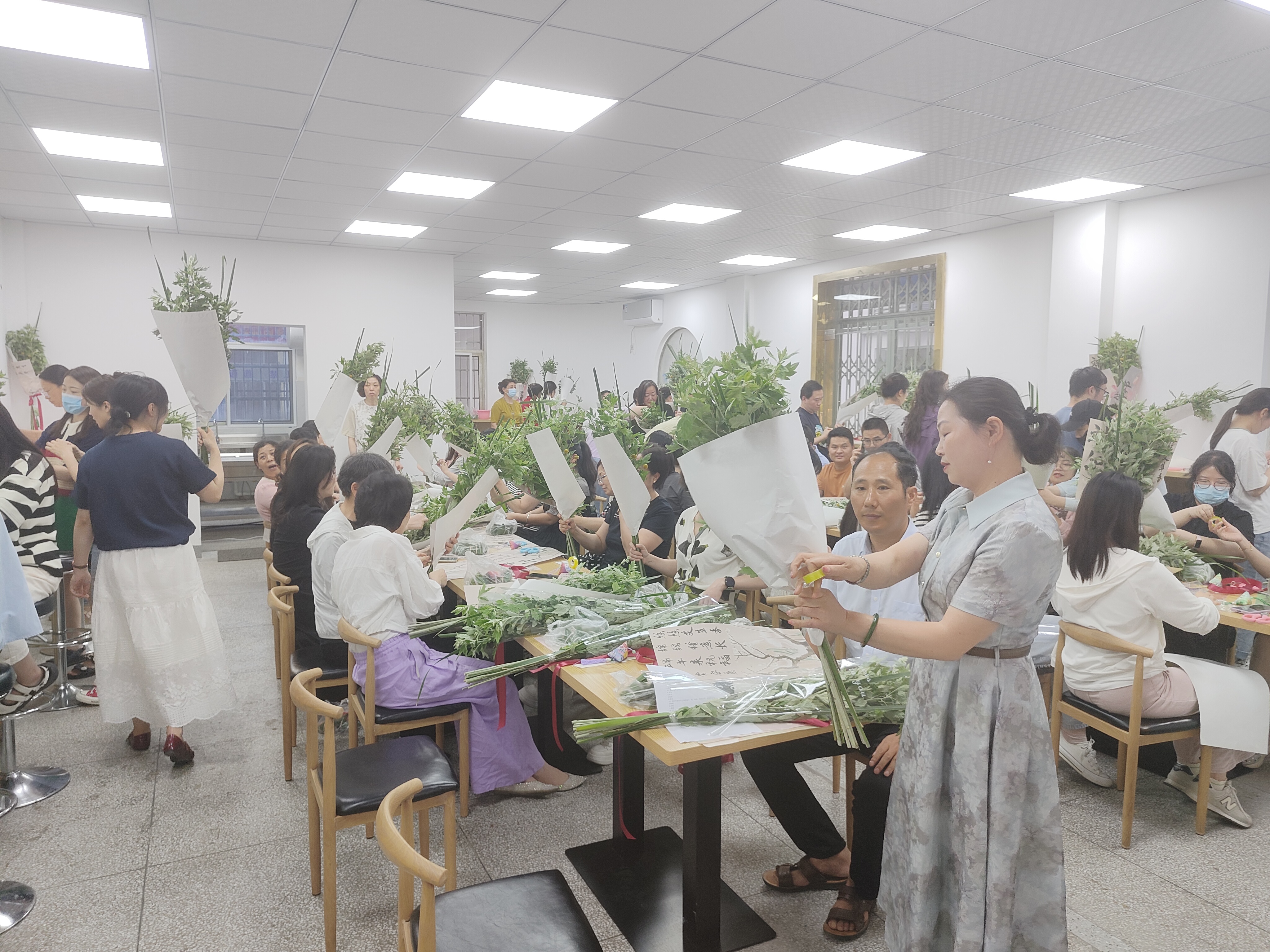 DIY環(huán)節(jié),指導(dǎo)老師為職工們演示包粽子的流程和技巧,隨后職工們親自動(dòng)手,大家捋粽葉、放餡料、封口捆扎,動(dòng)作逐漸嫻熟,不一會(huì)兒,一個(gè)個(gè)棱角分明的粽子就出現(xiàn)在大家的手上。隨后指導(dǎo)老師教大家制作艾草花束,并詳細(xì)講解這一習(xí)俗的來源與注意事項(xiàng),職工們一邊動(dòng)手,一邊話家常,既溝通了同事間的情誼,也在活動(dòng)中放松身心。