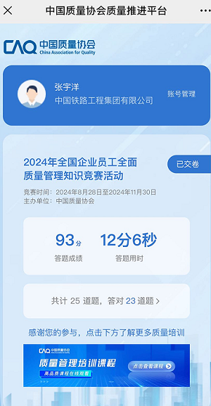 2024年9月,在第47個(gè)全國(guó)“質(zhì)量月”活動(dòng)中,中鐵六院合肥院認(rèn)真貫徹落實(shí)“質(zhì)量月”活動(dòng)安排部署,緊緊圍繞“加強(qiáng)質(zhì)量支撐 共建質(zhì)量強(qiáng)國(guó)”主題,結(jié)合實(shí)際,積極開(kāi)展系列“質(zhì)量月”活動(dòng),進(jìn)一步提升全體員工質(zhì)量意識(shí),營(yíng)造人人關(guān)注質(zhì)量、重視質(zhì)量、追求質(zhì)量的濃厚氛圍,推動(dòng)質(zhì)量強(qiáng)企建設(shè)。