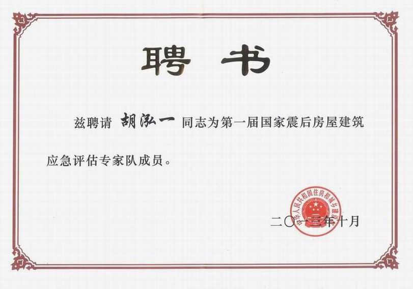 近日,從住房和城鄉(xiāng)建設(shè)部喜悉,我院總工程師胡泓一同志被住建部聘請(qǐng)為國家震后房屋建筑應(yīng)急評(píng)估專家隊(duì)成員。