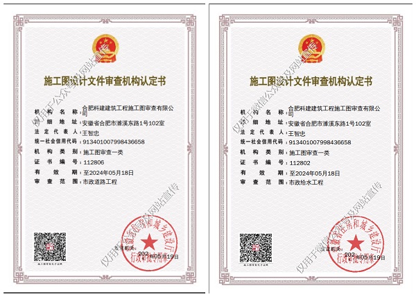 近日,經(jīng)安徽省住房和城鄉(xiāng)建設廳核準,合肥科建建筑工程施工圖審查有限公司(以下簡稱“科建審圖公司”)成功獲得市政道路、給水、排水、橋梁工程一類、風景園林二類審查資質(zhì)。