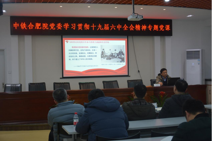 1月20日下午,中鐵六院·合肥院黨委書記、執(zhí)行董事王智忠以《深入學(xué)習(xí)貫徹黨的十九屆六中全會精神 全力推動中鐵六院合肥院建設(shè)區(qū)域性綜合設(shè)計院》為題,為全院60余名黨員干部講授專題黨課并作宣講報告。院紀(jì)委書記、工會主席、總建筑師胡華國主持黨課報告會。