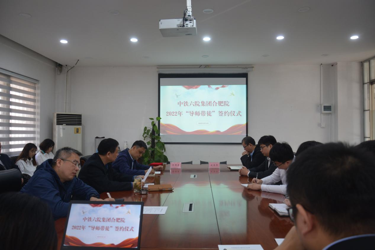10月14日上午,中鐵六院集團合肥院開展2022年“導師帶徒”暨師徒簽約儀式。活動由院團委書記程浩然主持,院黨委書記、執(zhí)行董事王智忠,院紀委書記、工會主席、總建筑師胡華國,院副總經理、總工程師高雷永出席本次活動。院人力資源部、團委及各師徒共20余人參加。