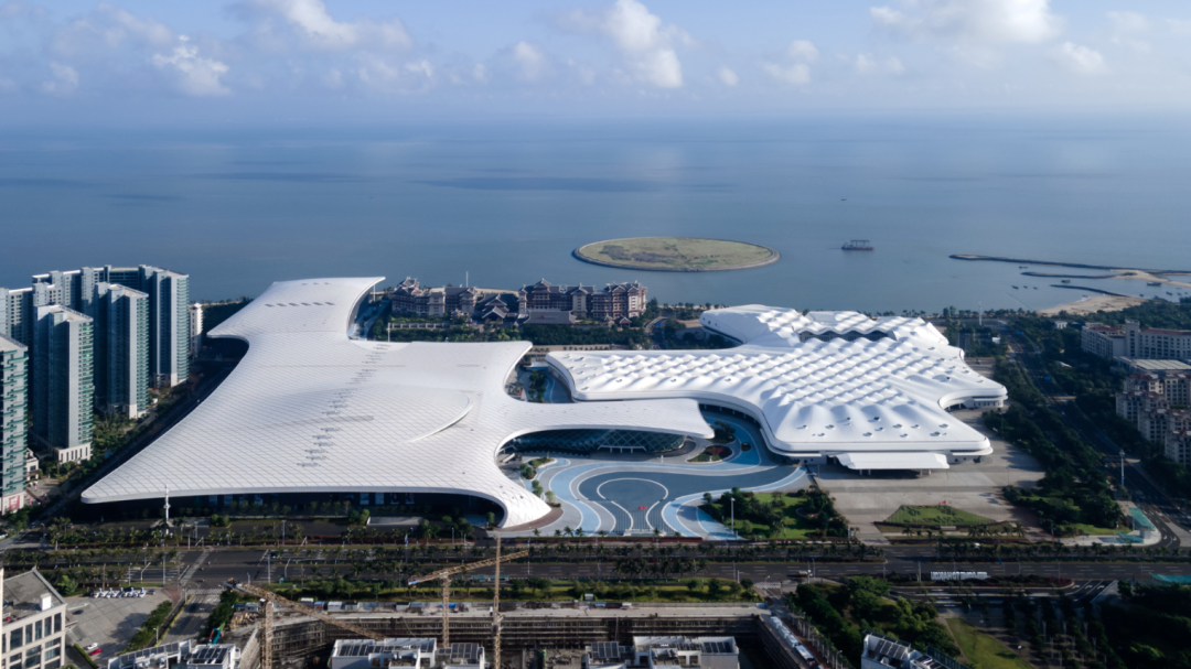 該項目由我院承擔勘察、設計、保修等多個內(nèi)容設計咨詢服務工作,于2018年11月開工,項目總建筑面積約19.86萬㎡,室內(nèi)展館凈面積7.5萬平方米,是具有舉辦展覽、會議、宴會、節(jié)慶賽事等多個功能的復合型會展綜合體,建成后對于海南自由貿(mào)易試驗區(qū)和中國特色自由貿(mào)易港建設具有十分重要意義。在項目各級領(lǐng)導高度重視支持下,我院克服施工周期短、質(zhì)量要求高、工藝技術(shù)復雜等困難,積極配合各方工作,推進項目順利于2020年9月建成使用。