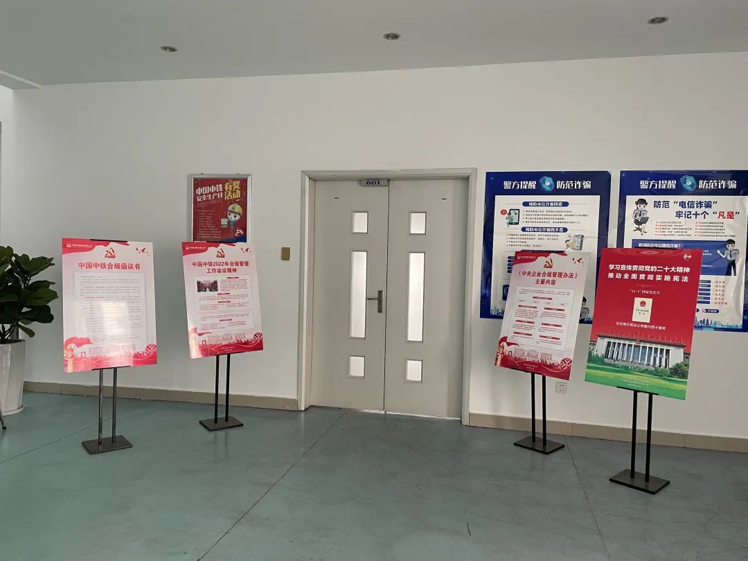 中鐵六院集團(tuán)合肥院?jiǎn)⒂迷簝?nèi)電子屏,并在一樓宣傳欄設(shè)置《學(xué)習(xí)宣傳貫徹黨的二十大精神推動(dòng)全面貫徹實(shí)施憲法》《二十大報(bào)告中的法治金句》宣傳海報(bào),持之以恒做好憲法學(xué)習(xí)與宣傳。