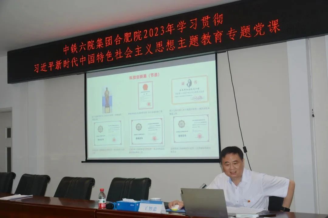 王智忠從扎實(shí)開展學(xué)習(xí)貫徹習(xí)近平新時(shí)代中國特色社會(huì)主義思想主題教育的四個(gè)方面、“兩個(gè)確立”具有決定性意義的三個(gè)維度、集團(tuán)公司重組以來和合肥院加入六院以來兩個(gè)層面的發(fā)展成績、錨定合肥院高質(zhì)量發(fā)展這一根本目標(biāo)四個(gè)層面的內(nèi)容進(jìn)行專題授課。