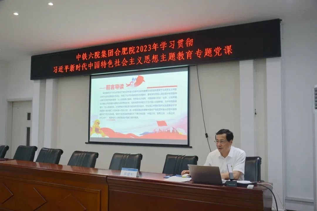為深入開展學(xué)習(xí)貫徹習(xí)近平新時(shí)代中國特色社會(huì)主義思想主題教育,7月11日下午,中鐵六院集團(tuán)合肥院黨委副書記、總經(jīng)理霍建軍為在院領(lǐng)導(dǎo)班子、中層干部、全體黨員共計(jì)70余人講授主題教育專題黨課。院副總經(jīng)理、總建筑師胡華國主持會(huì)議。