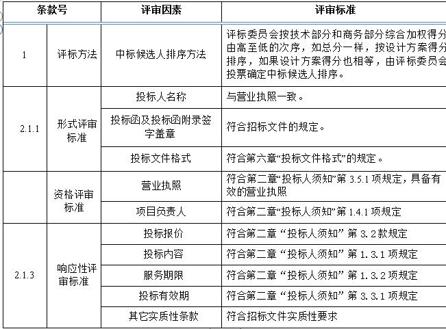 2.1.3響應(yīng)性評審標準:見評標辦法前附表。